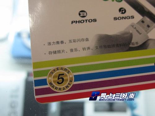PNY的這款Magic Bean魔豆依然采用了PNY一貫的包裝設計,不過在包裝底部有五種顏色的彩虹條,以此來表明這款U盤有五種顏色可選,分別對應2G到16G的不同容量,本次到貨三好街的是萊姆綠色的2G容量產品,非常的清新自然,PNY將搞怪也發揮到了極致。