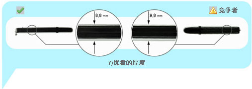 沒人喜歡塊頭大的U盤.U盤的厚度只是因為幾毫米的不同也會產生很大的變化.上面顯示的我們的U盤最厚為1mm但整體更薄了.