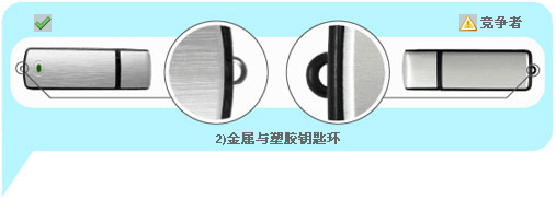 如果您打算將U盤掛在一個鑰匙串上,U盤上的小環是金屬的就很重要.因為塑料的小環可能在用過幾次以后就會破,并且U盤隨后可能也會丟.