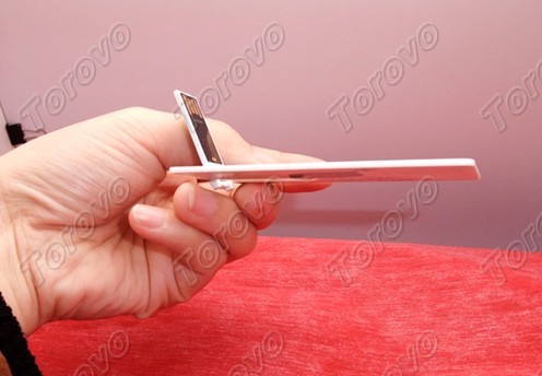 卡片上稍鼓的地方是U盤的芯片位置,用手指從背面位置(多出兩個凹槽)輕輕向上一頂,就可以輕松地將芯片接口翻轉出來,超薄黑膠體芯片就出現了,直接插入電腦的USB口即可使用(切不可用蠻力,以免折斷)。超薄卡式外型方便攜帶,放錢包放口袋都OK。