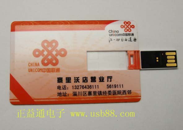 中國(guó)聯(lián)通山東寨里沃店?duì)I業(yè)廳定制卡片U盤, 深圳正益通U盤廠家(正益通禮品U盤公司)專業(yè)提供各種款式、材質(zhì)的U盤定制,品質(zhì)保證,量大優(yōu)惠。業(yè)務(wù)聯(lián)系電話:0755-84524565. 1392