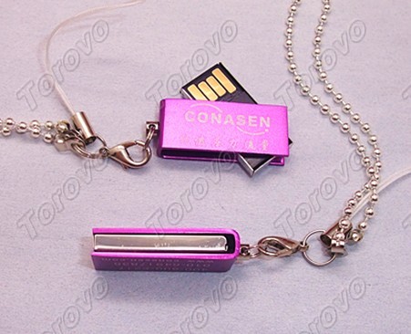 此款迷你旋轉U盤,超小的造型僅比USB接口大出少許,突出了輕、薄、小的產品特色。
