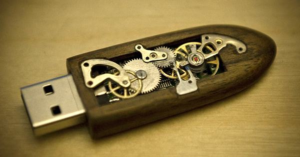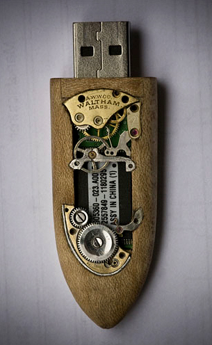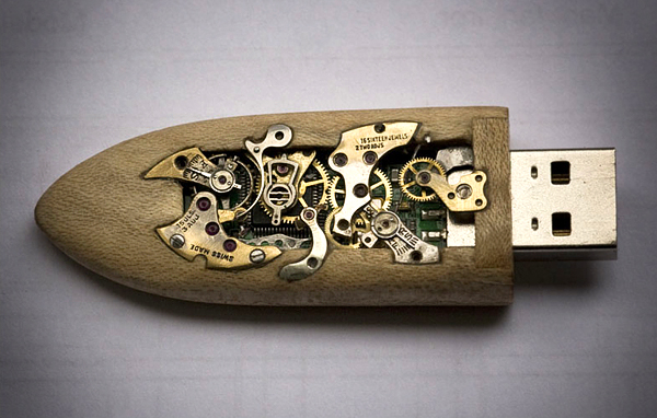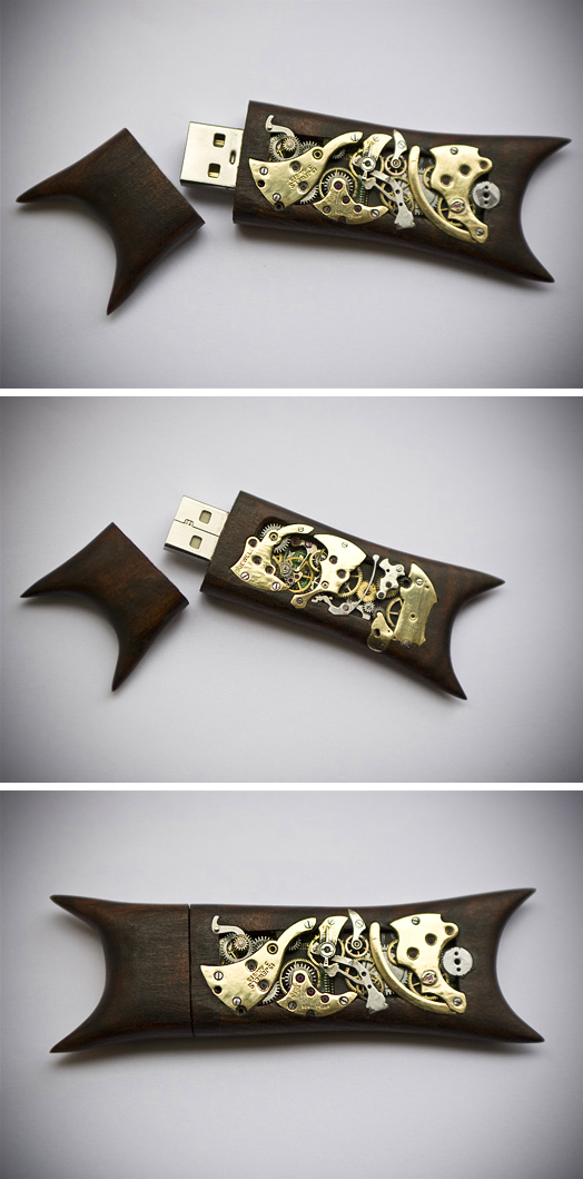 如果你是機器迷,你看到這些蒸汽朋克風格的U盤一定會眼前一亮吧。為了制作這樣的蒸汽朋克風格不尋常的U盤,你會需要一些木材,幾個老懷表,以及足夠的天賦才華和創造力。以下這些杰出的U盤作品,由英國藝術家尼克(back2root) 創作。這些U盤兵團由不同類型的木材制作:烏木,紅木,甚至如進口木材虎特爾。每個作品花費了長達12小時和8個老懷表。這種努力工作的結果,就是下面你 看到的美麗!