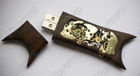 制作這樣的蒸汽朋克風格不尋常的U盤,你會需要一些木材,幾個老懷表,以及足夠的天賦才華和創造力。以下這些杰出的U盤作品,由英國藝術家尼克(back2root) 創作。這些楓木U盤兵團由不同類型的木材制作:烏木,紅木,甚至如進口木材虎特爾。每個作品花費了長達12小時和8個老懷表。這種努力工作的結果,就是下面你 看到的美麗!